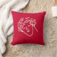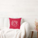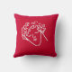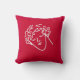 röd kudde med grafisk design teckning i ansikte på en högstyrd ungdom