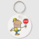 En man som står på en stoppskylt för att styra trafiken. Den här designen ser ut att vara effektiv i den här nyckelkedjan