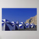 Fotografiska utskrifter och Poster av Man Walking By Blue and White Beach Umbrellas, Santorini (Grekland)