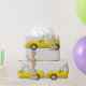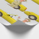 En man bredvid sin gult bil. Den här designen ser ut att vara verkligen på dessa figursättningsPappra