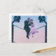 Man och kvinna sitter på telefontråd 1900 vykort