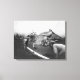 Man Riding Zebra Jumping Fence Photograph Canvastryck