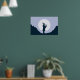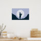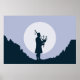 En bild poster med en illustration av en silhuett av en man som bär en kilt och spelar säckrör i månljuset. Bakgrunden är ett svårt terräng, allt i en skotsk drömatmosfär. Den här väggkonsten blir perfekt för dekoration hemma eller på kontoret.