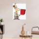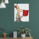 En man tittar nyfiken vid en röd låda. Den här designen ser ut att vara verkligen på dessa Poster