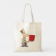 En man tittar nyfiken vid en röd låda. Den här designen ser ut att vara verkligen på den här Tote Bag