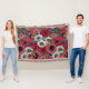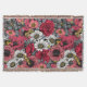 Olika handdragna blommor och mjäror i rött, grått och gult