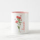 Fira en januari-födelsedag med personlig mugg med födelseblomman till januari, nejlikan. Det här vackert designade mugg är perfekt för att hålla dryckerna vid den perfekta temperaturen samtidigt som det tillför lite elegans med sin blommigt design. Oavsett om det gäller en vän, en familjemedlem eller till och med dig själv, så gör mugg i anpassningsbarna en tankfull och unik födelsedagspresent.