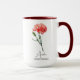 Födelsemånadsblomman januari Kaffet mugg är ett vackert exempel på en nejlikblomma. Under blomman finns det ett skript med anpassade namn i elegant. Under namn står det "januari - nejlikan", vilket visar att hennes födelseblomma är nejlikan. Det är en underbar personlig mugg, en tankfull gåva till någon född i januari.