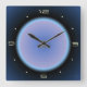 En söt måncirkel i rosa och lila med en ljusblå kant. Denna fyrkantiga klocka har en indigoblå bakgrund och krämfärgade siffror.