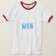 Manar Text eller Namn eller Ord med Himlar Blue Färg Text och Stil är Basic Ringer T-Shirt, Färg type är White/Red och Storlek type är Vuxen L.