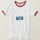 Manar Text eller Namn eller Ord med Ocean Blue Färg Text och Stil är Basic Ringer T-Shirt, Färg är White/Red och Storlek text är Vuxen L.