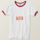 Manar Text eller Namn eller Ord med Salmon Färg och Stil är Basic Ringer T-Shirt, Färg är White/Red och Storlek type är Vuxen L.