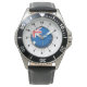 Manar Stainless Steel Black Leather Strap Watch Australia Flagga