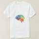 Trendig t-shirt i svart (eller vitt) med en detaljerad geometrisk illustration av en mänsklig hjärna i mitten uppdelad i två halvor. Den lämnat sidan ritas med strukturerade linjer- och coola-toner som grått och blått, som symboliserar logik och analys, medan högerna brinner med vibrerande färg som rött, gult, rosa och grönt i form av stänk och konstnärliga drag, som symboliserar kreativitet och fantasi. Utformningen blandar tankar och känslor, vilket återspeglar en personlighet som både kärlekar konst och kunskap.