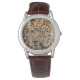 Manar är en klassisk brun läderremsa som visas med ett fotavtryck av vildlevande leopard. Välj den här klockan från flera stilar. Anpassa den här klockan eller köp som det är. Lagrar-bild