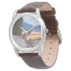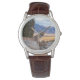 Manar är ett lejont fototryck av det klassiska bruna läderbandet som visas med ett foto av ett viltlevande berg. Välj den här klockan från flera stilar. Anpassa den här klockan eller köp som det är. Lagrar-bild