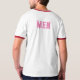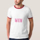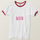 Manar Text eller Namn eller Ord med Rosa Färg Text och Stil är Basic Ringer T-Shirt, Färg är White/Red och Storlek är Vuxen L.
