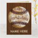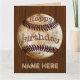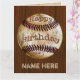 Manar Födelsedagskort för baseball för personligvintage med hans NAMN och ditt meddelande som skrivas in i texten två, boxas till din höger. Gammalt smutsa ner vintagebaseball på körsbärsröd wood bakgrund för fauxen för stilig yet billig en för manar vintagefödelsedaggåva. Mycket coolt. Du kan ta bort någon text. Visas det stora baseballfödelsedagkortet eller väljer noterakortet eller kortet för stamgästformathälsning med det inklusive kuvertet.