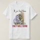 Manar för Raccoonsoporbanditen T-tröja med grafikillustrationdesign avbildar av en förtjusande raccoon som samlar, och att äta äpplen och olika matobjekt ut ur öppen sopor kan med citationstecken för textorduttryck ", om du matar dem som de ska kom!",