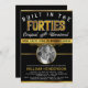 Manar lustig födelsedagsfest inbjudan för födelsedatum på 1940-talet med vintage grafik på en svart och guld fotobakgrund. Det här manar födelsedagsfest inbjudan är enkelt att anpassa för evenemanget genom att helt enkelt lägga till din händelseinformation och ladda upp fotot.