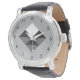 Modern, abstrakt, blockkonst, triangeldesign i svartvitt och grått. Den unika mittbilden är en geometrisk roligt för klassisk stilar eller mode framåt. Finns i ditt val av stilar, design och band för manar och kvinnor, se produktalternativ