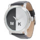 Coola modern manar i monogram med armbandsur i en svart och vit elegant modern design, inklusive namn initialer i monogram, som du kan anpassa och göra till en egen. Designad för professioneller eller personlig använda som är upptagna i verksamheten och gör en perfektens exekutiva gåva.