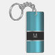 Manliga manar monogramkeychains med coolan tittar metallisk bakgrund för blått som skrivs digitalt ut på båda sidor med det initiala namn kan du, göra ditt eget, genom att byta ut den initiala ta prov med ditt eget. En modern design i en materiell högkvalitativ akryl, som låter dig bära din husnycklar eller bil, stämm i stil. Designat som en för manar partyfavör eller keychain, pojkar eller affärsprofessioneller.