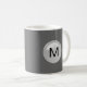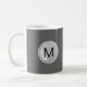 Monogramkaffe koppar med den kalla monogramen emblem, att looksnågot liknande en bubbla som du kan personifiera och göra ditt eget, genom enkelt att byta ut det initiala mallnamn med din, tillsammans med grå färgbakgrundsfärg du kan ändra, om du önskar till. Designade för manar för unik monogramkaffekopp eller affärsprofessioneller. Ge dessa som personlig gåvor eller party favors i denna en rolig kopp för kaffe, tea eller din favorit- dryck.
