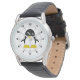 Manar Penguin Black Leather Strap Watch Armbandsur