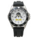 Manar Penguin Steel Black Rubber Strap Watch Armbandsur