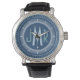 Elegant och klassbara, rena och enkla anpassade monogrammade klockor för den speciella mannen på presentlistan. Klassiskt men modernt grått från stil och vita hash-märken på agate blue ansikte. Fet monogram initialer i art deco Gatsby stil för de sofistikerade herrarna - klicka på Anpassa för att ändra teckenstorleken, stil eller färg. Noveltyns monogramklockor ger en perfekt personlig för födelsedagar, årsdagar, studenten, pension, bröllopsfest, arbetssökande, helgdagar och andra milstolpar firande.