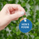 Nyckelkedja med vit text i blå bakgrund: Manar.