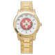 Manar Schweiz Flagga Oversized Guld Watch Armbandsur