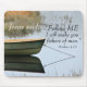 Mousepad har en båt på vatten med Bible Verse Matthew 4:19, "Följ mig så gör jag dig till fiskare från manar".