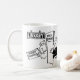Lustigt bibliotek eller bokhandeln tecknad mugg. Bibliotek har två manar som läser bokar. Den ena är en lång historia, den andra är en kort-historia. Gift för bok älskare.