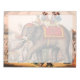 Vintage av manar som utför en cirkusåtgärd med en elefant. En man rider på betarna, en annan ljuger under djuret.