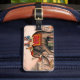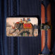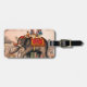 Manar som utför en cirkus-handling med en elefant. bagagebricka
