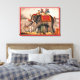Manar som utför en cirkus-handling med en elefant. canvastryck