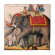 Manar som utför en cirkus-handling med en elefant. kakelplatta