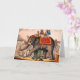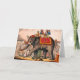 Vintage av manar som utför en cirkusåtgärd med en elefant. En man rider på betarna, en annan ljuger under djuret.