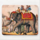 Manar som utför en cirkus-handling med en elefant. musmatta