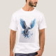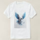 Bilden visar en stor vit örn med skarpa blå accenter, som stiger upp genom luft med utsträckt vingar. Örnen verkar bryta sig igenom en isbarriär eller kristallskjul, vilket ger utformningen en känsla av kraft och beslutsamhet. Den totala estetiska bilden är dynamisk och infångad på ett visuellt sätt, med en blandning av realistiska detaljer och stiliserad inslag. Paletten i färg är slående, med den vita och blå kontrasterar vackert mot gråttets bakgrund.