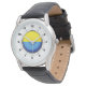 Manar Krona Protector Black Leather Strap Watch Ukraina Flagga