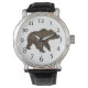 Manar Watch with Black Vintage Leather Band and Bear Design