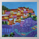 Painting of Manarola, Italy is a fun whimsical rendition of a hill town in the Cinque Terra region of Italy. The original painting is acrylic on canvas 48x48 inches created by Charlene Rivers
