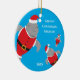 En julprydnad med tre, tecknaden, manatees i Santa utrustar på en blåttbakgrund. Prydnaden inkluderar ord "god jul", ett namn och utrymme för året. Go tillfogar denna roliga prydnad till ditt träd.