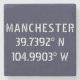 Manchester Englands latitud- och longitud karta-koordinater i modernt stadsteckensnitt