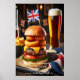 Indulge i en Manchester Munchies-klassiker med den här brittiska Pub-Stil Burger. Ett tjockt nötköttsprov från Angus, grilat till juistfullhet, fylls med åldras cheddarost, crispy onion ringar och ett generöst utstryk av H-sås, som alla är staplade högt på en rostad engelsk muffingbun. En liten brittisk flagga tillför en liten bit brittisk charm, medan en liten liten del av leran slutför denna klassiska pub-måltid.