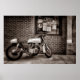 Sepia tonade bilden av en gammal cafémotorcykel genom fotografen Joanne Mariol.