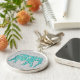 Mandala-blomelefant - turkos, grått och vitt rund silverfärgad nyckelring